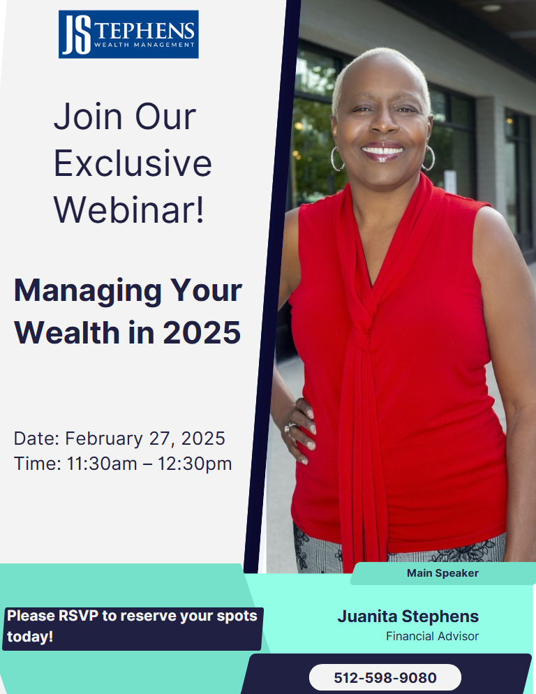 Please join us for our upcoming virtual managing your wealth in 2025 webinar. We'll be answering some of your most pressing questions, taking a brief look at recent market behavior, and reviewing how we're continuing to serve you and your financial strategy. Feel free to invite your friends and loved ones.